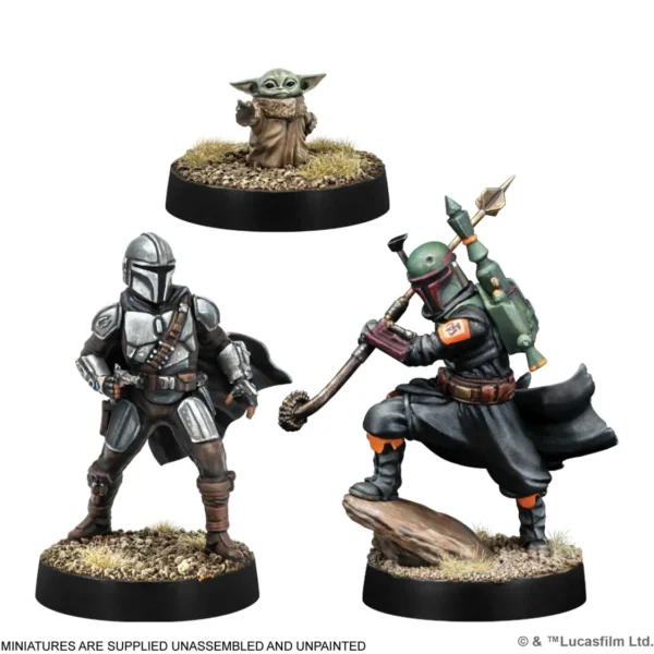 Once the galaxy’s most formidable bounty hunters have received a contract, they will stop at nothing to accomplish their mission. Equipped with iconic beskar armor and a deadly arsenal of weapons, their unmatched prowess puts their enemies to the test. Boba Fett (Daimyo) strikes fear into the hearts of his enemies and ensures no one escapes his grasp. Joined by Din Djarin, known as The Mandalorian, and his counterpart Grogu, a foundling with a strong connection to the Force, this trio of characters brings a wide variety of iconic abilities to the battlefield of Star Wars™: Legion.